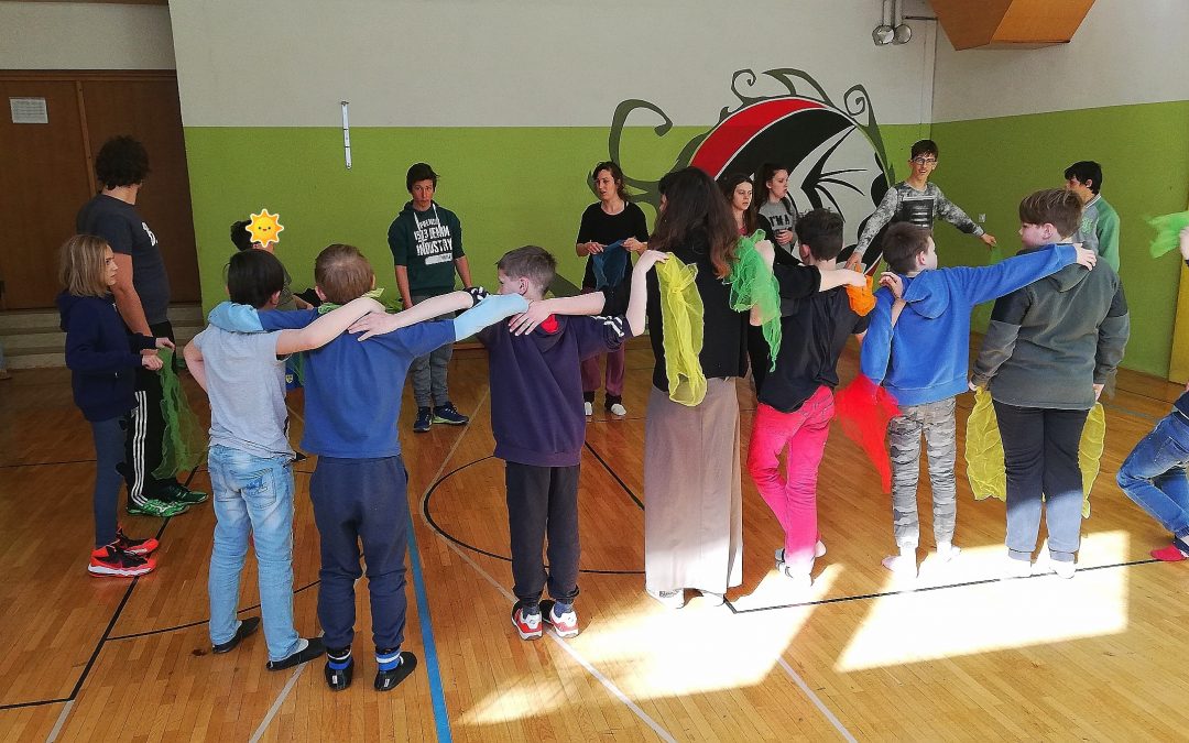 Na delavnicah smo se učili žongliranja z žogicami, igrali smo se z diabolom, kitajskimi krožniki, rožnimi palicami ter drugimi cirkuškimi rekviziti. Zelo všeč nam je bila ravnotežna deska z imenom »rola-bola«. Navdušil nas je tudi monocikel. Gradili smo človeške piramide in izvajali akrobatske figure v dvoje ali več. Spoznali smo, da v cirkusu zabava hodi z roko v roki z vztrajnostjo in skupinskim delom. Učili se smo, kako nastopati na odru in z novimi žonglerskimi in akrobatskimi spretnostmi ter preko skupnega cilja utrjevali občutek za skupnost in to, da smo pomembni- prav vsak izmed nas. Urili smo socialne veščine, trenirali pozornost, bili empatični in vljudni drug do drugega. Otrokom ni bilo težko počakati na vrsto za vadbo z izbranim pripomočkom ali na individualno pozornost mentorja. Na trenutke je bilo v dvorani zelo glasno in živahno, ko pa smo sedeli v skupinskem krogu, smo prikazali, da zmoremo biti tudi mirni, tihi in osredotočeni ter se poslušati med seboj.